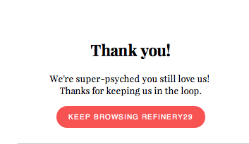 Well played, Refinery29! You kept me as a subscriber. Refinery29? We’re fine.