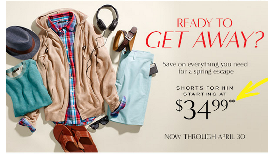 Once you’ve reached the destination of your road trip, it’s (hopefully) time to cool down in some water. Luckily, Bonobos sent this beautiful email (also on 4/16- why were there so many interesting emails that day?). That first picture – perfection. The subject line and the image of the pretty blue water just made me want to dive in (which works SO well, because that’s exactly what their CTA was). Like the above email, it’s simple, clean, and good. It’s even informative with a diagram of different lengths of board shorts, which is nice because Bonobos is mostly an online business, and it may be hard to figure out what length to buy just based on measurements.